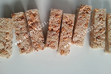 第二天,筆者參觀了客戶的米花糖生產(chǎn)線,米花糖潔白中滲透著一點微黃,切邊整齊,成色效果不錯。他們的整條生產(chǎn)線設(shè)備也是我公司生產(chǎn)的。