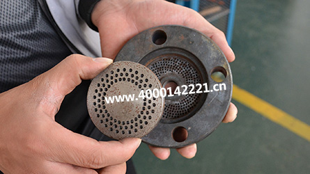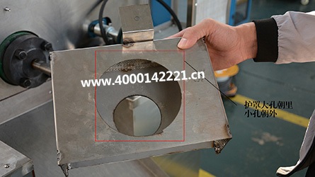 機(jī)器膨化完成后,需要把螺桿、螺套、機(jī)頭卸下,機(jī)頭用煤氣爐或者天然氣爐燒,不要用電磁爐,把里面的殘留廢物清理干凈。目前還沒(méi)有比較好的辦法清理機(jī)頭,加熱15分鐘左右,即可把機(jī)頭拿下來(lái);加熱好后的機(jī)頭,需要將貼片先取出,使用一根羊毛刷固定機(jī)頭,用螺絲刀可以把貼片取下。然后使用隨機(jī)的鋼絲把小孔清通,以備下次使用;