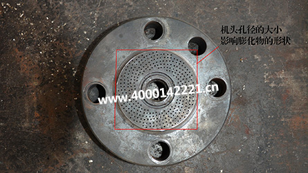 4.機(jī)頭小孔的介紹;我們的機(jī)頭可以膨化的形狀有很多,機(jī)頭孔徑的大小將直接導(dǎo)致膨化物的大小,圖片中紅色的圈圈比較標(biāo)注出來(lái)了。目前支持的形狀有:小米花、大米花、陰米形、星形、球體等等