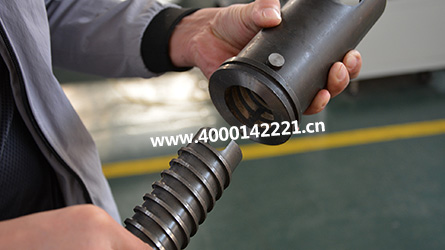 8.螺桿與螺套安裝完畢;接下來(lái),需要把螺桿螺套裝進(jìn)機(jī)頭,機(jī)頭凹進(jìn)部分對(duì)著螺桿螺套凸出一端推進(jìn)去;此時(shí),螺桿與螺套還不能平行,需要將螺桿再順時(shí)針擰上一圈,直到螺桿螺套保持平行即可(如8-1圖)