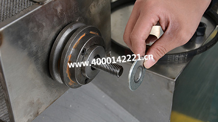物料膨化度的調(diào)節(jié);還有一個(gè)要點(diǎn),非常重要,兩個(gè)小螺絲的松緊度要?jiǎng)倓偤?,不能太緊,也不可過(guò)松。詳細(xì)請(qǐng)參考操作視頻12分50秒,先擰里面的螺絲,外面的螺絲鎖緊。如果滑輪太重,則需要把里面的螺絲向外擰一點(diǎn),再鎖緊外面螺絲。我們總結(jié)出來(lái)的經(jīng)驗(yàn),如果滑輪能夠轉(zhuǎn)上半圈,力度則剛剛好。具體松緊度需要靠自己多調(diào)節(jié),即可熟能生巧!