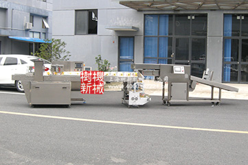 - 2017年5月12日,我公司客戶來我廠試機,在工廠現場,我們調試好了一套沙琪瑪流水線的設備供客戶觀看。沙琪瑪生產需經過這么幾個流程,第一,將油炸好的面粒倒進圓筒攪拌機攪拌;第二,攪拌好的物料裝進SMCF-650切塊機的入料口,自動完成整壓、冷卻、分條、分切這四道工序;第三,完成后的裸裝沙琪瑪經理料線整理成一列,緊接著進行分塊;第四,最后進入理料包裝機,便可完成自動包裝了。...