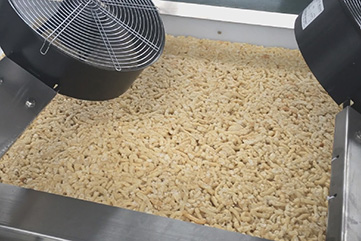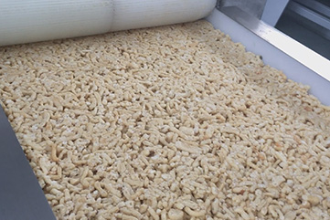 - 2017年10月19日,我公司迎來了德國客戶的現場驗機。本次使用SMCP-70J擠出膨化機實驗,分別以大米、非洲糧食、玉米為對象;從實驗結果看,星形米花的膨化度非常高,產量較大;非洲糧食膨化的成型效果最佳,成品率高;玉米的膨化效果相比大米而言,顏色更加鮮艷,呈淡黃色,比較有食欲感;...